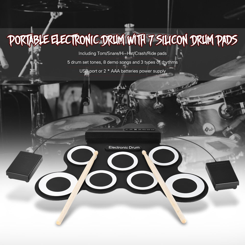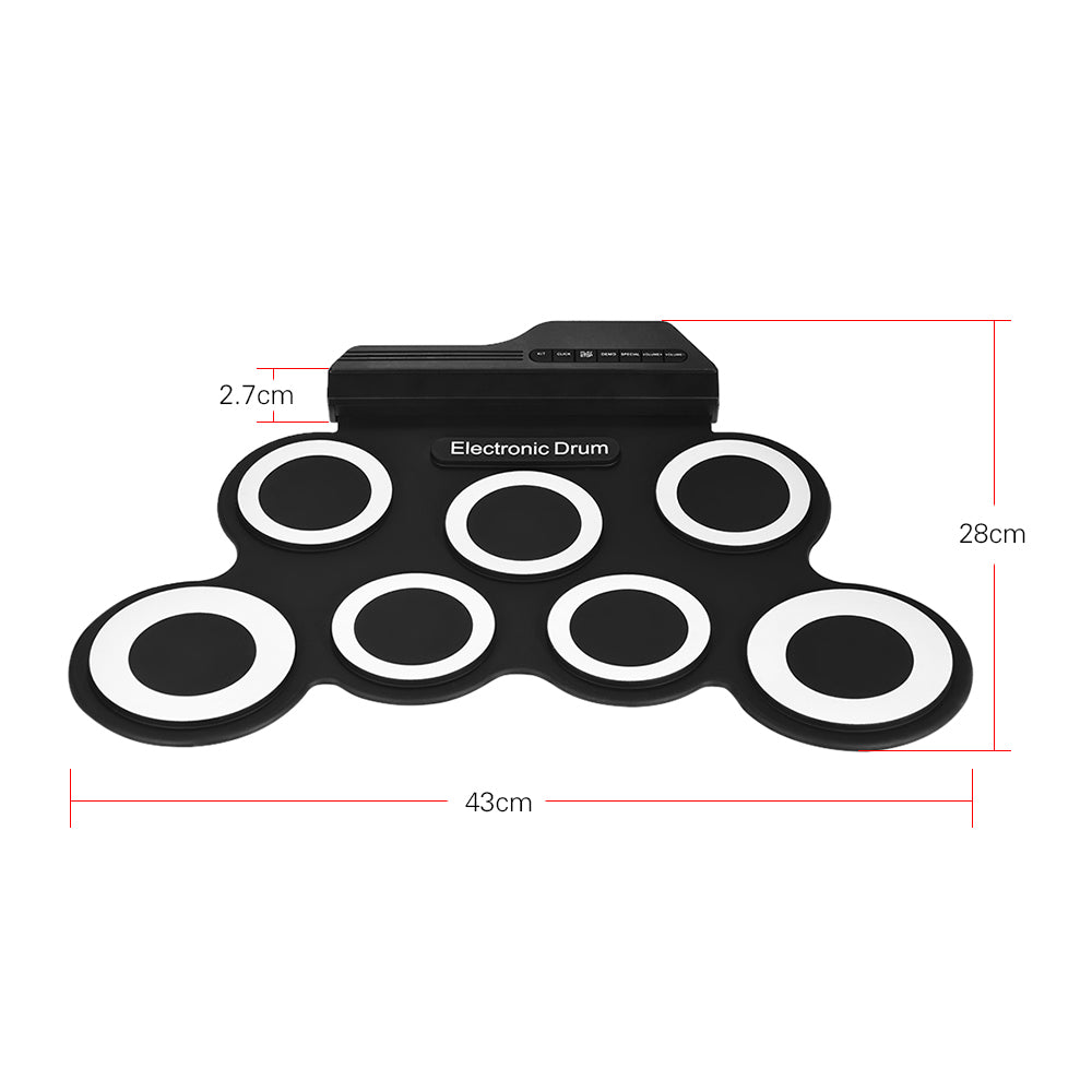 - With 7 silicon drum pads including Tom(3)/Snare/Hi-Hat/Crash/Ride, making excellent sounds and simulating real beating effect.